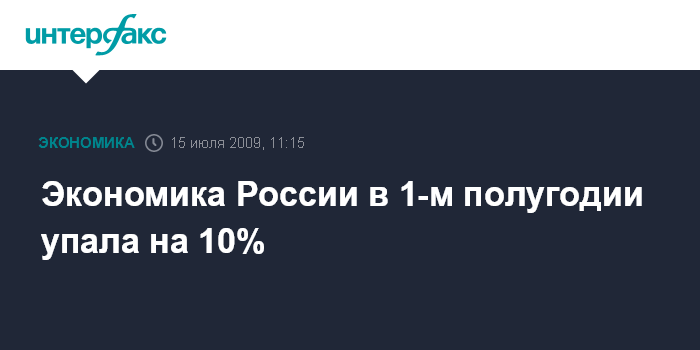 Москва. 15 июля. INTERFAX.RU - В 1-м полугодии ВВП России снизился на 10,1% по сравнению с 1-м полугодием 2008 года. Такой предварительный прогноз Минэкономразвития представила глава ведомства Эльвира Набиуллина на встрече с представителями ОЭСР в ходе презентации экономического обзора этой организации по России.