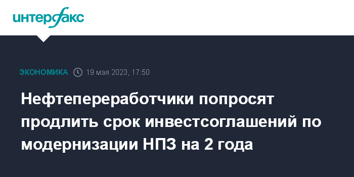 В апреле 2022 года Минфин сообщил, что направил в правительство законопроект, увеличивающий для НПЗ срок модернизации производств по инвестсоглашениям на два года, однако о дальнейшей судьбе этой инициативы не сообщалось.