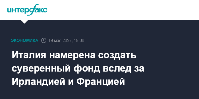 Италия намерена создать суверенный фонд вслед за Ирландией и Францией