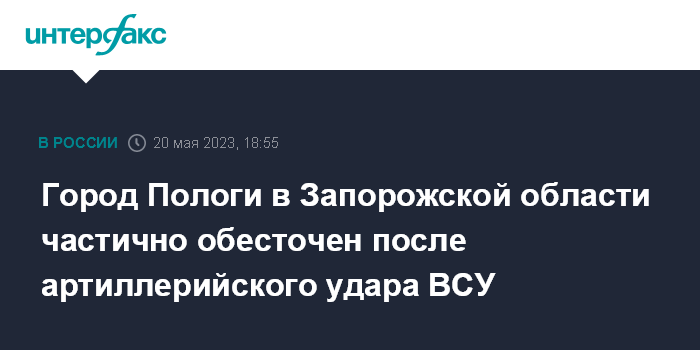 Москва. 20 мая. INTERFAX.RU - Город Пологи на севере Запорожской области попал в субботу под обстрел со стороны вооруженных сил Украины, сообщил журналистам представитель экстренных служб региона.