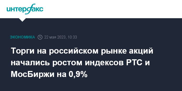 Торги на российском рынке акций начались ростом индексов РТС и МосБиржи на 0,9%
