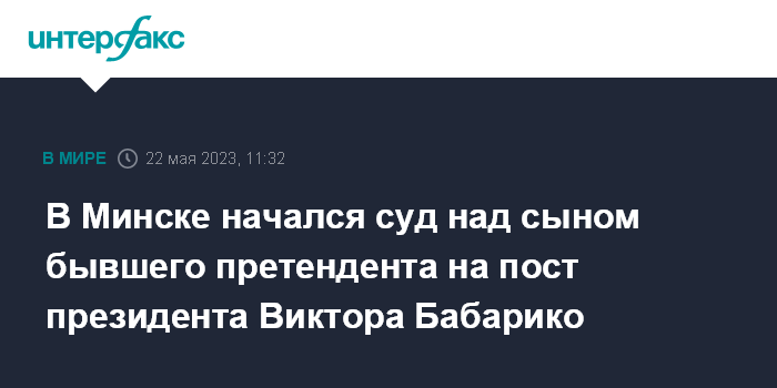 Москва. 22 мая. INTERFAX.RU - Минский областной суд начал рассматривать дело Эдуарда Бабарико, сына бывшего участника предвыборной гонки на президентских выборах 2020 года, бывшего председателя правления "Белгазпромбанка" Виктора Бабарико, сообщает "БелТА".