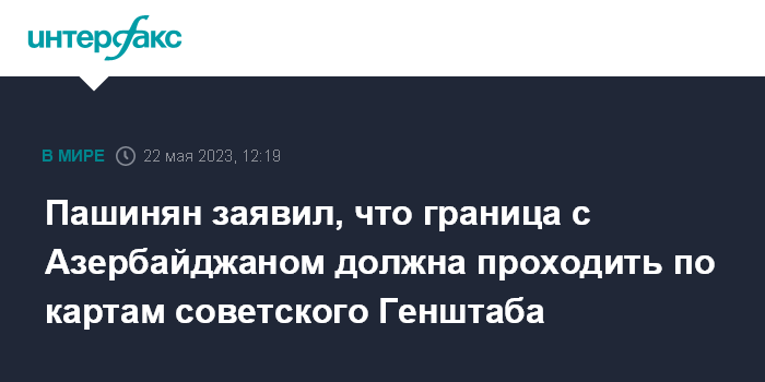 Москва. 22 мая. INTERFAX.RU - Процесс делимитации границы между Арменией и Азербайджан должен быть осуществлен на основе карт Генштаба ВС СССР 1975 года, заявил на пресс-конференции премьер-министр Армении Никол Пашинян.