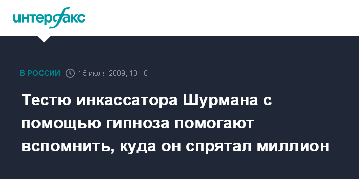 Он пояснил, что 1 млн рублей, в частности, был спрятан тестем грабителя. "Сейчас мы ему помогаем, в том числе и с помощью гипноза вспомнить, где деньги", - сказал начальник ГУВД.