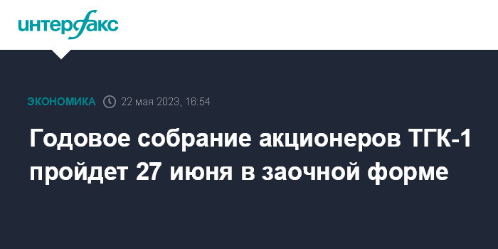 Годовое собрание акционеров ТГК-1 пройдет 27 июня в заочной форме