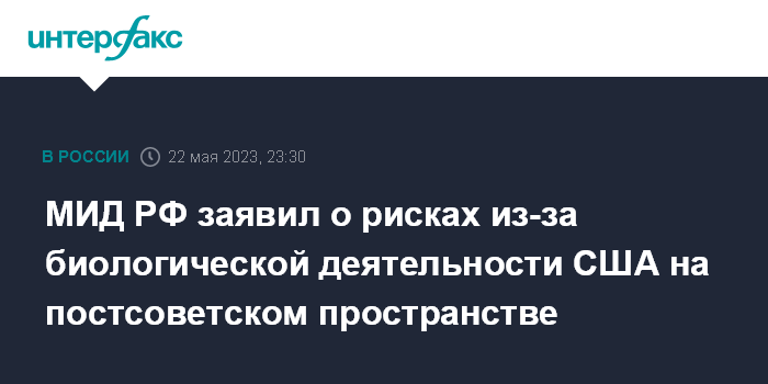 МИД РФ заявил о рисках из-за биологической деятельности США на постсоветском пространстве