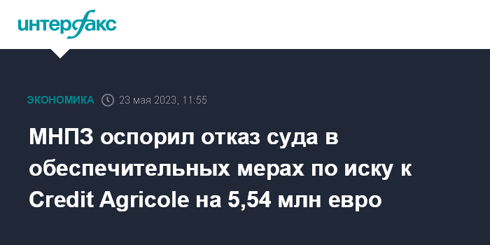 МНПЗ оспорил отказ суда в обеспечительных мерах по иску к Credit Agricole на 5,54 млн евро