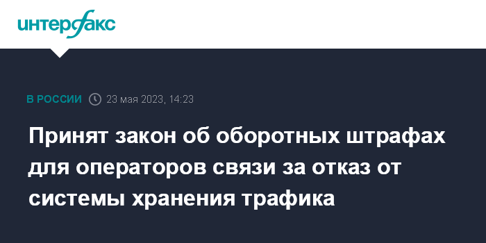 Принят закон об оборотных штрафах для операторов связи за отказ от системы хранения трафика