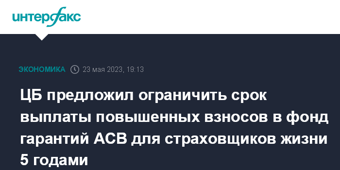 ЦБ предложил ограничить срок выплаты повышенных взносов в фонд гарантий АСВ для страховщиков жизни 5 годами