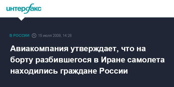 Ереван. 15 июля. INTERFAX.RU - На борту разбившегося в Иране самолета Ту-154, следовавшего рейсом из Тегерана в Ереван, находились граждане России, сообщили "Интерфаксу" в представительстве авиакомпании Caspian Air в Ереване.