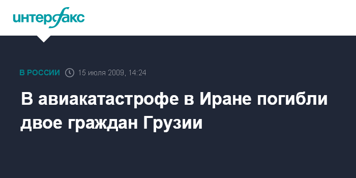 Тбилиси.15 июля. INTERFAX.RU - Двое граждан Грузии погибли в среду в авиакатастрофе на территории Ирана.