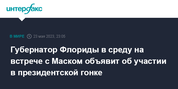 Губернатор Флориды в среду на встрече с Маском объявит об участии в президентской гонке
