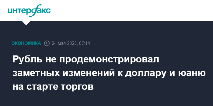 Москва. 24 мая. INTERFAX.RU - Доллар США и юань не показали выраженной динамики на Московской бирже на старте торгов в среду, рубль почти стабилен с учетом противоречивых сигналов с мировых рынков.
