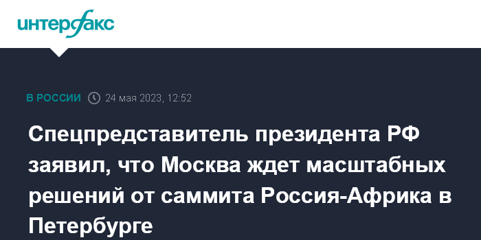 Спецпредставитель президента РФ заявил, что Москва ждет масштабных решений от саммита Россия-Африка в Петербурге
