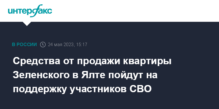 Средства от продажи квартиры Зеленского в Ялте пойдут на поддержку участников СВО