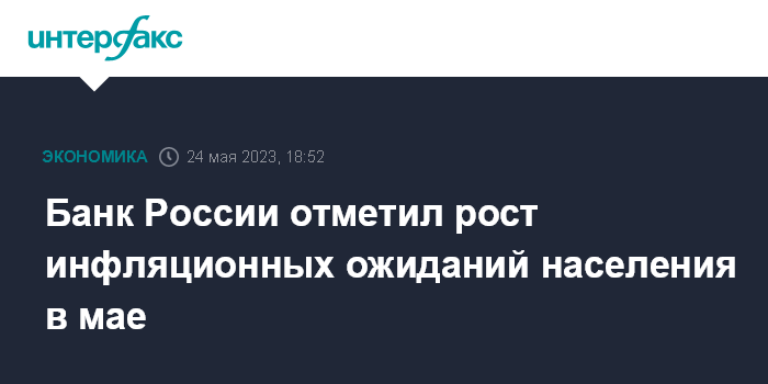 Инфляционные ожидания граждан, согласно опросу "инФОМ", в мае выросли до 10,8% с 10,4% в апреле. Рост этого показателя произошел только у респондентов без сбережений, у подгруппы со сбережениями они не изменились, отмечает ЦБ.