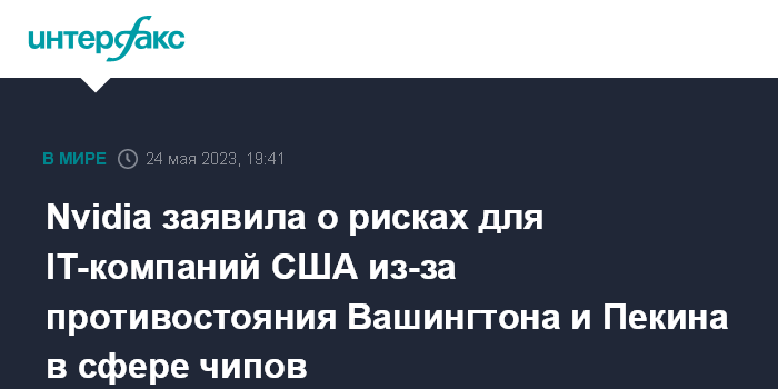 Nvidia заявила о рисках для IT-компаний США из-за противостояния Вашингтона и Пекина в сфере чипов