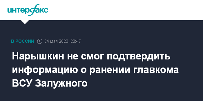 Москва. 24 мая. INTERFAX.RU - Глава СВР Сергей Нарышкин заявил, что не может утверждать, что слухи о ранении главкома ВСУ Валерия Залужного правдивы.