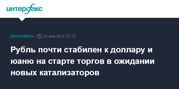 Москва. 25 мая. INTERFAX.RU - Доллар США и юань меняются незначительно на Московской бирже на старте торгов в четверг, рубль демонстрирует боковую динамику в отсутствие заметных торговых идей.