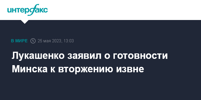 Москва. 25 мая. INTERFAX.RU - Президент Белоруссии Александр Лукашенко заявил о готовности республики к вторжению извне, комментируя высказывания бывшего замминистра национальной обороны, экс-командующего сухопутными войсками Польши генерал-лейтенанта Вальдемара Скшипчака о поддержке возможного вооруженного переворота в Белоруссии.