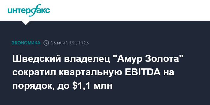 Шведский владелец "Амур Золота" сократил квартальную EBITDA на порядок, до $1,1 млн