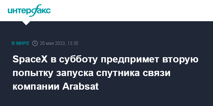 SpaceX в субботу предпримет вторую попытку запуска спутника связи компании Arabsat