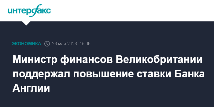 Министр финансов Великобритании поддержал повышение ставки Банка Англии