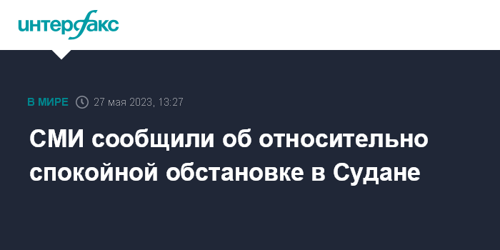 Москва. 27 мая. INTERFAX.RU - Обстановка в столице Судана утром в субботу была спокойной, режим прекращения огня, который действует с начала недели, в целом соблюдается, передают западные СМИ.