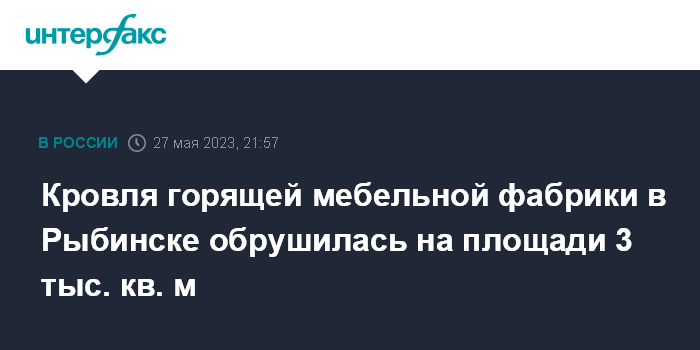 Кровля горящей мебельной фабрики в Рыбинске обрушилась на площади 3 тыс. кв. м