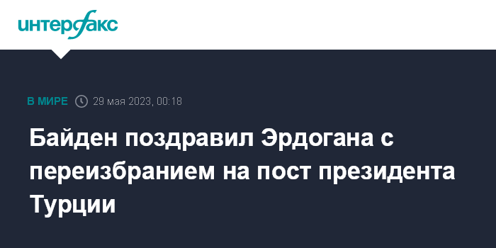 "Поздравляю президента Эрдогана с переизбранием. Готов продолжать с ним, союзником по НАТО, работу над двусторонними и международными вопросами"- написал Байден в соцсети.