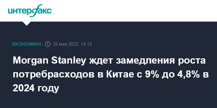 Morgan Stanley ждет замедления роста потребрасходов в Китае с 9% до 4,8% в 2024 году