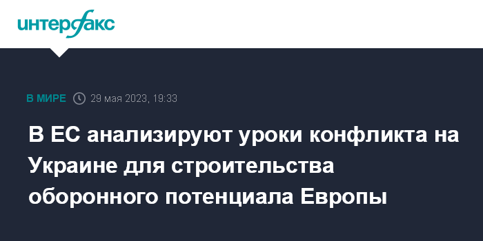 Москва. 29 мая. INTERFAX.RU - В Европейском союзе начался анализ долгосрочных уроков, которые ЕС должен извлечь из военного конфликта на Украине, формируя свой оборонный потенциал.