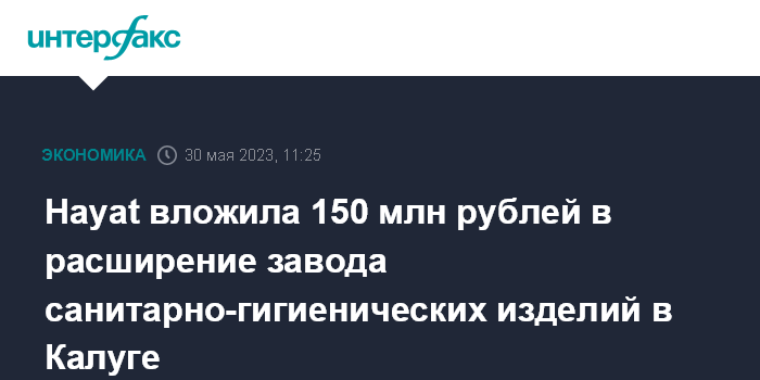 "Новые инвестиции в производственную площадку в Калуге призваны укрепить наше положение и увеличить долю рынка "Хаят" в сегменте AFH (away-from-home, "вне дома"). Благодаря открытию новой линии у нас появилась возможность существенно расширить ассортимент профессиональных санитарно-гигиенических изделий, производящихся в России из локального сырья", - приводит пресс-служба слова гендиректора "Хаят Россия" Метина Мете.