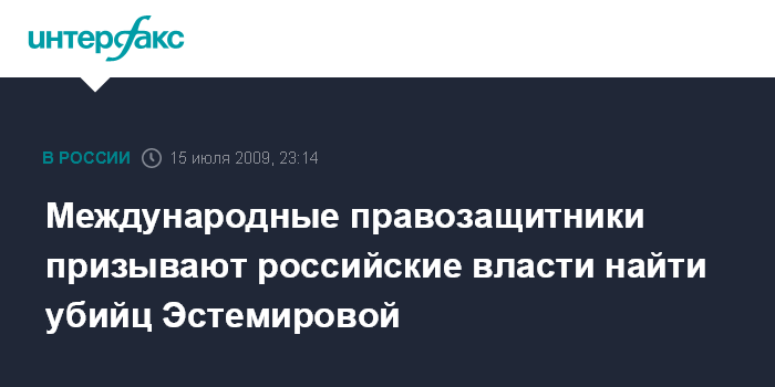 Международные правозащитники призывают российские власти найти убийц Эстемировой