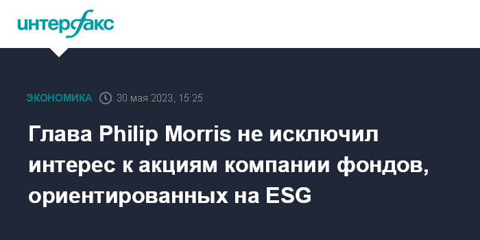 Глава Philip Morris не исключил интерес к акциям компании фондов, ориентированных на ESG