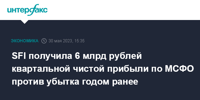 SFI получила 6 млрд рублей квартальной чистой прибыли по МСФО против убытка годом ранее