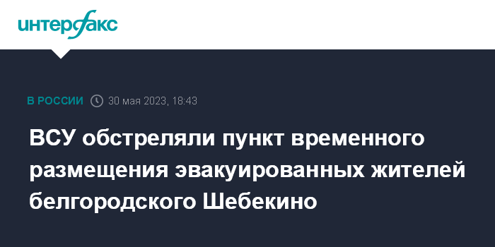 Москва. 30 мая. INTERFAX.RU - Губернатор Белгородской области Вячеслав Гладков сообщил об обстреле с украинской стороны пункта временного размещения жителей, вывезенных из Шебекино.