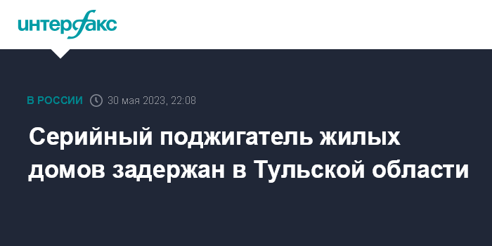 Москва. 30 мая. INTERFAX.RU - Тульские следователи возбудили уголовное дело по факту серийного поджога жилых домов, подозреваемый задержан, сообщила во вторник пресс-служба регионального управления СК России.