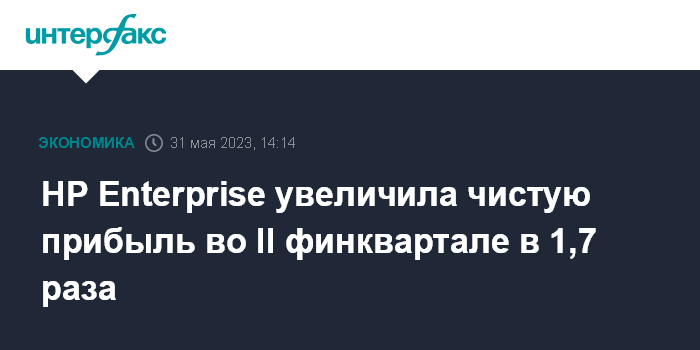 Москва. 31 мая. INTERFAX.RU - Американская Hewlett Packard Enterprise (HPE), поставщик решений в сфере IT и телекоммуникационных услуг, увеличила чистую прибыль во втором финансовом квартале (завершился 30 апреля) в 1,7 раза, выручку - на 4%.