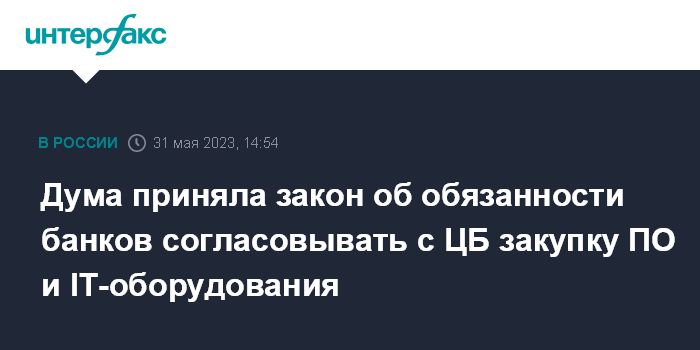 Дума приняла закон об обязанности банков согласовывать с ЦБ закупку ПО и IT-оборудования