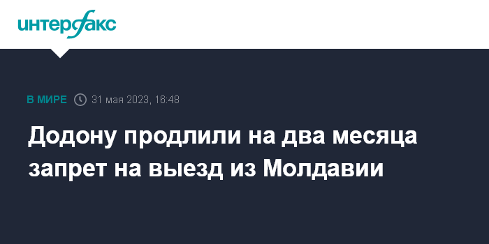 Москва. 31 мая. INTERFAX.RU - Бывшему президенту Молдавии Игорю Додону продлили на 60 дней запрет на выезд из страны. Такое решение приняла в среду Высшая судебная палата республики.