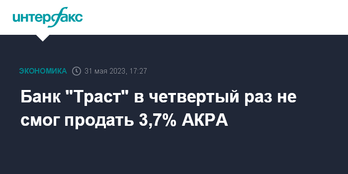 Банк "Траст" в четвертый раз не смог продать 3,7% АКРА