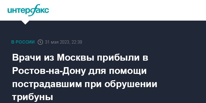 Врачи из Москвы прибыли в Ростов-на-Дону для помощи пострадавшим при обрушении трибуны