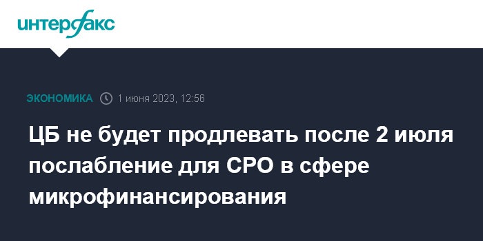 ЦБ не будет продлевать после 2 июля послабление для СРО в сфере микрофинансирования