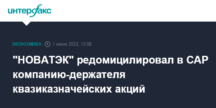 "НОВАТЭК" редомицилировал в САР компанию-держателя квазиказначейских акций