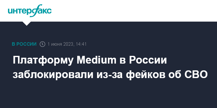 Москва. 1 июня. INTERFAX.RU - Причиной блокировки в России платформы для социальной журналистики Medium стал отказ удалить недостоверную информацию о специальной военной операции на территории Украины, сообщили "Интерфаксу" в Роскомнадзоре.