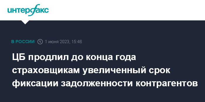 ЦБ продлил до конца года страховщикам увеличенный срок фиксации задолженности контрагентов