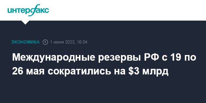 Международные резервы РФ с 19 по 26 мая сократились на $3 млрд