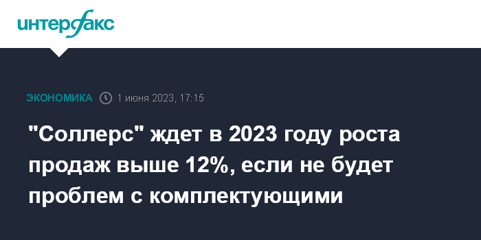"Соллерс" ждет в 2023 году роста продаж выше 12%, если не будет проблем с комплектующими
