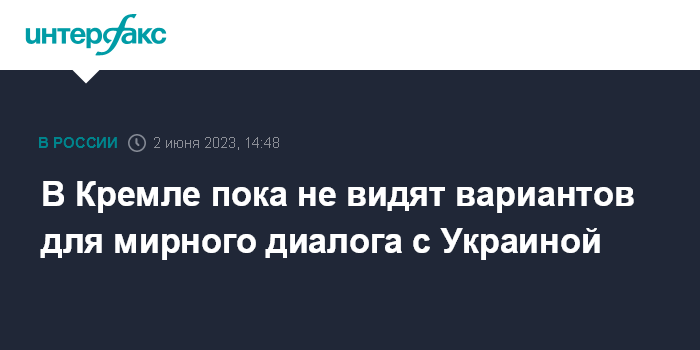 Москва. 2 июня. INTERFAX.RU - Вариантов мирного диалога Москвы и Киева сейчас нет, заявил пресс-секретарь президента РФ Дмитрий Песков.
